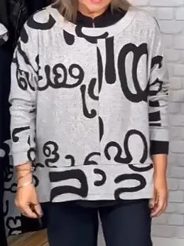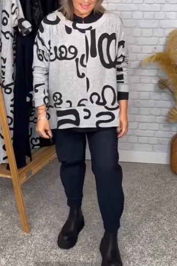 Retro Gray Printed Long Sleeve Sweatshirt Top