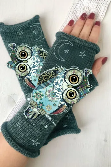 Wholesale Retro Owl Print Knit Fingerless Gloves