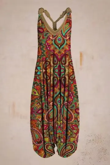 Retro Paisley Print Loose Casual Jumpsuit