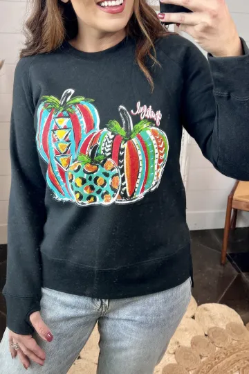 Retro Pumpkin Print Long Sleeve Sweatshirt