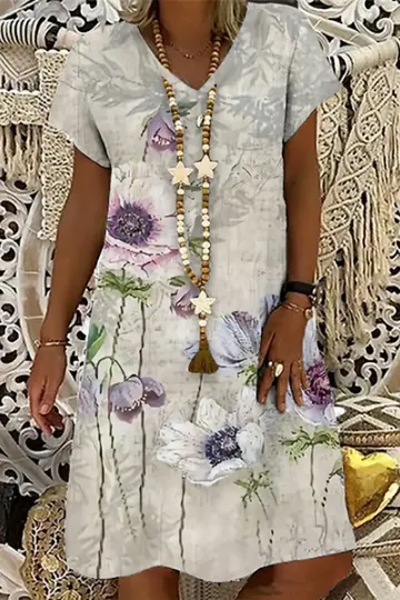 Wholesale Retro summer short sleeve V-neck fashion dress style medium length skirt