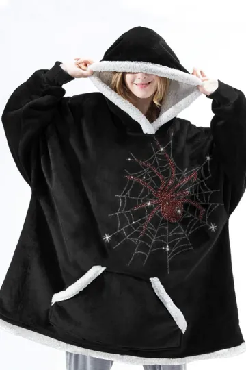 Rhinestone Spider Loose Pocket Blanket Hoodie Pajamas