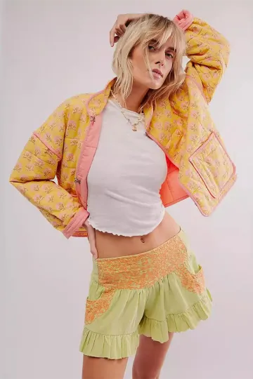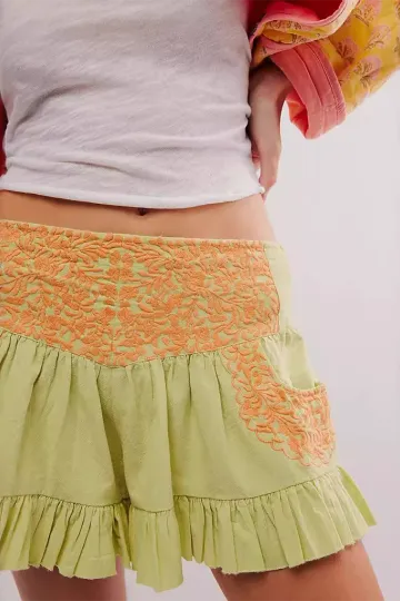 Wholesale Ruffled Low Rise Embroidered Ruffle Pocket Shorts