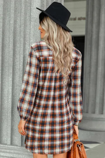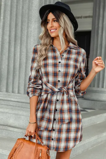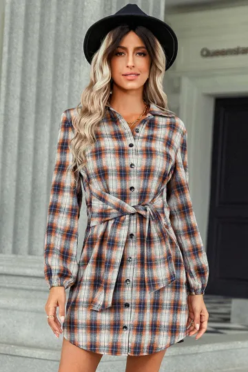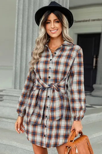 Wholesale Seasonal single breasted fashionable plaid lace waist dress