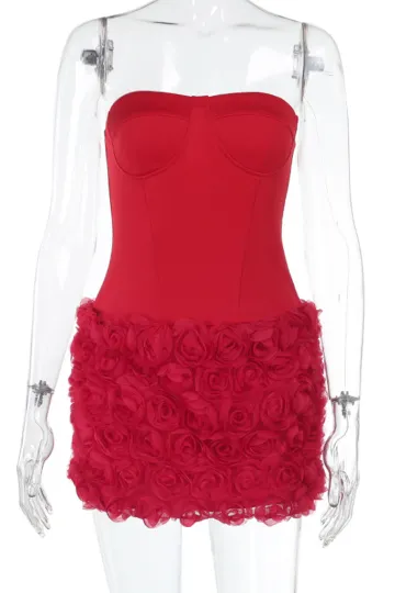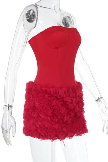 Wholesale Sexy 3D Flower Texture Tube Top Dress