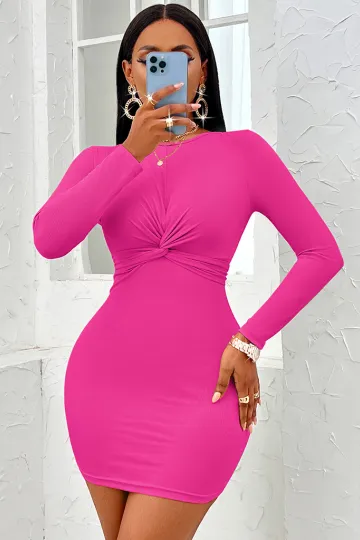 Sexy Casual Round Neck Twist Long Sleeve Dress