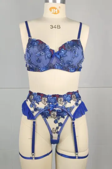 Sexy French Embroidered Flowers Ultra-thin Gathered Sexy Lingerie See-through Thong Bra Set