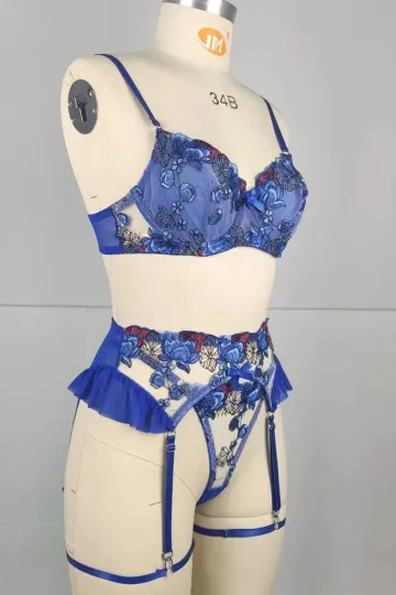 Wholesale Sexy French Embroidered Flowers Ultra-thin Gathered Sexy Lingerie See-through Thong Bra Set
