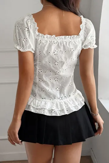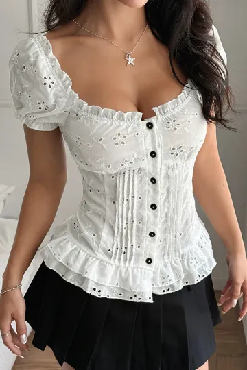 Sexy hot girl hollow short-sleeved T-shirt shirt
