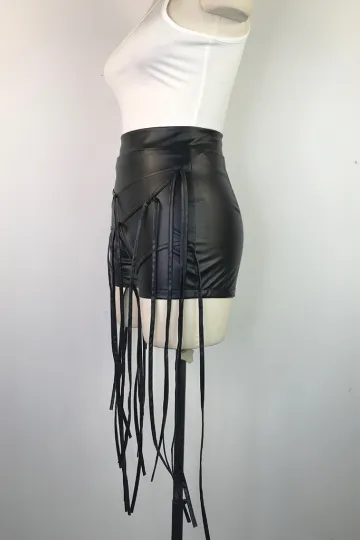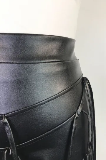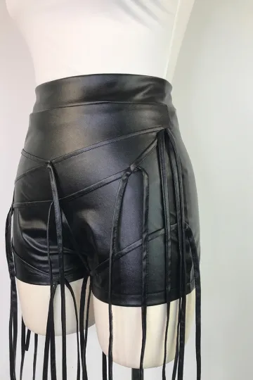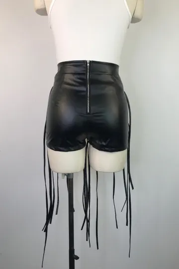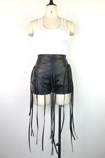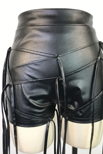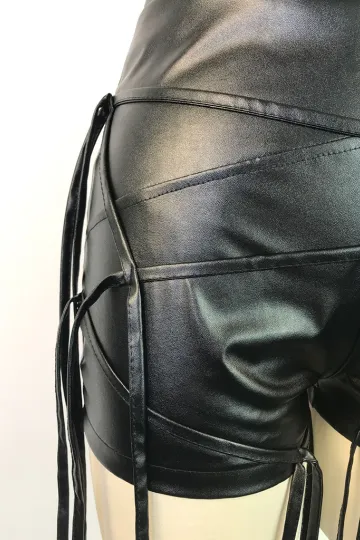 Wholesale Sexy PU leather pants INS style leather rope braided low waist shorts