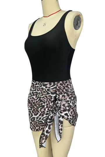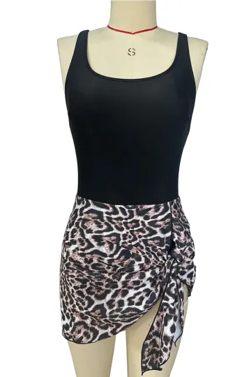 Sexy slim skirt-style leopard print one-piece swimsuit bikini
