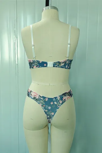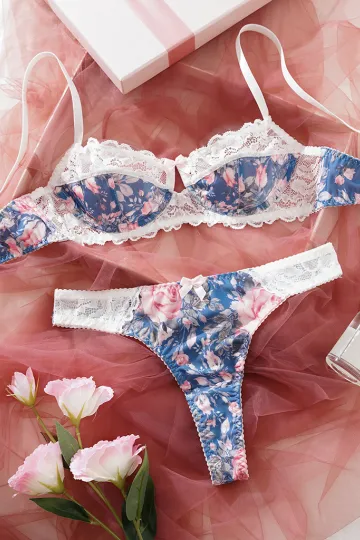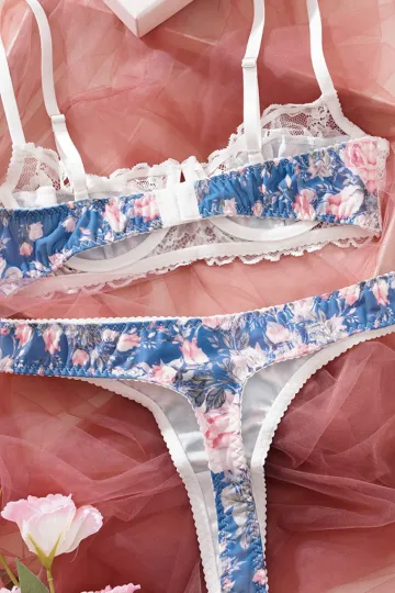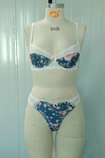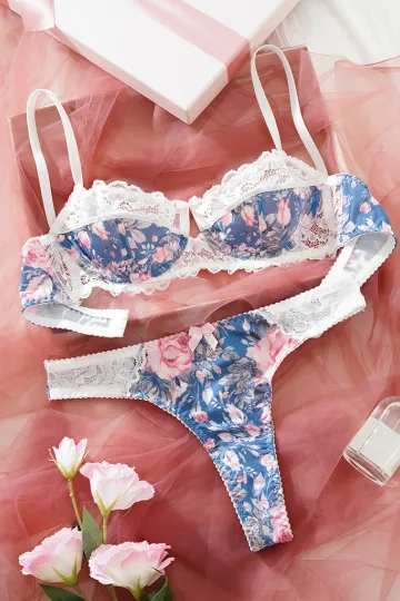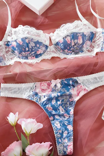 Wholesale Sexy women's small floral lace patchwork printed underwear set