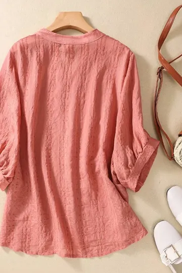 Simple Loose Printed Cotton Linen Shirt