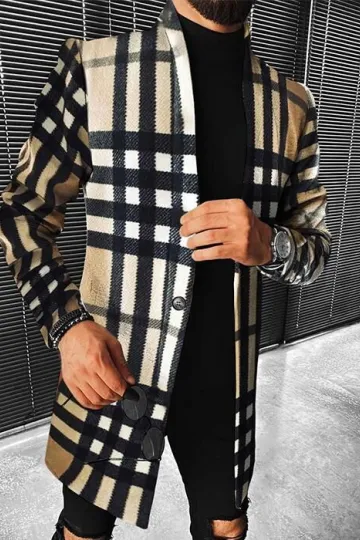 Wholesale Single-breasted casual plaid overcoat mens jacket coat