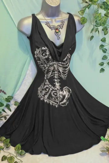 Wholesale Skeleton Punk V neck Sleeveless Casual Dress
