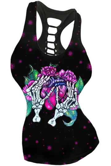 Wholesale Skeleton Ribcage Floral Racerback Tank Top