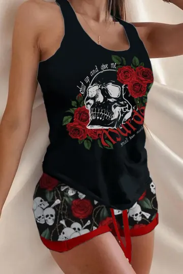 Wholesale Skull Print Sleeveless Punk Streetwear Set