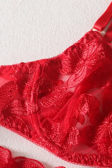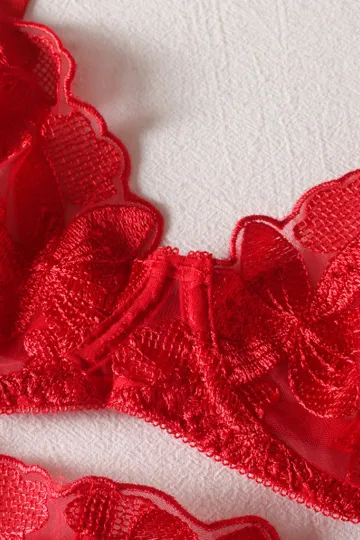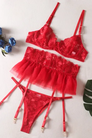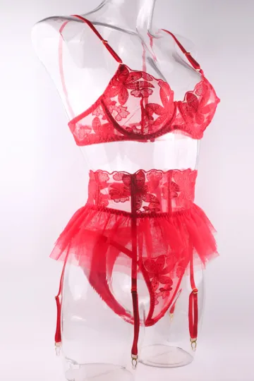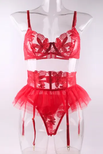 Wholesale Small skirt embroidered bra garter belt three-piece sexy underwear