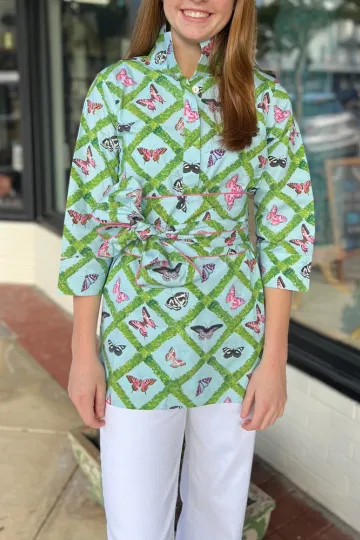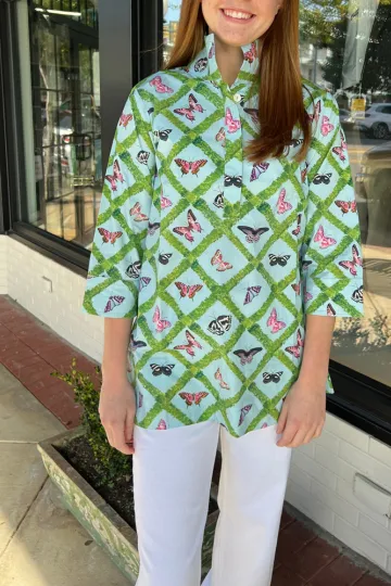 Wholesale Stand Collar Butterfly Print Top