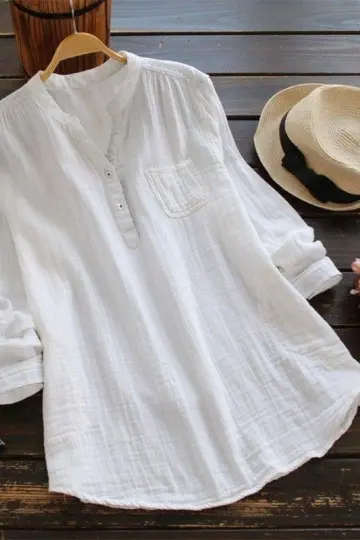 Summer Japanese solid color round neck long-sleeved cotton shirt