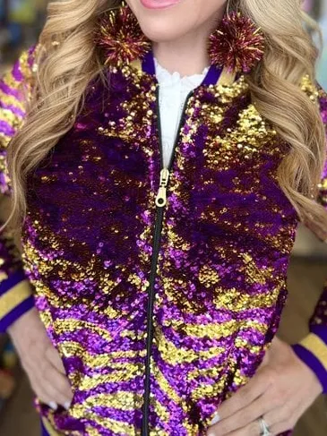 Tiger Stripe Magic Sequin Jacket, Purple & Gold