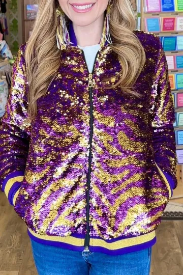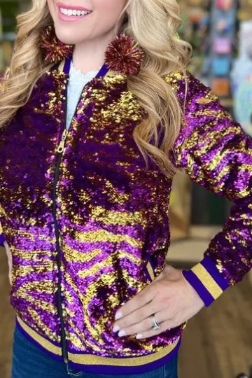 Wholesale Tiger Stripe Magic Sequin Jacket, Purple & Gold