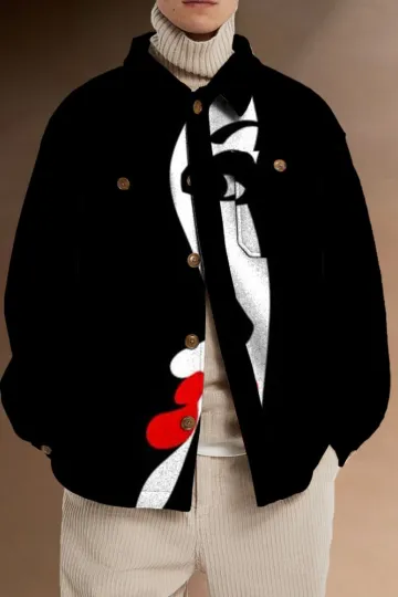 Title: Abstract Face Print Button-Up Jacket