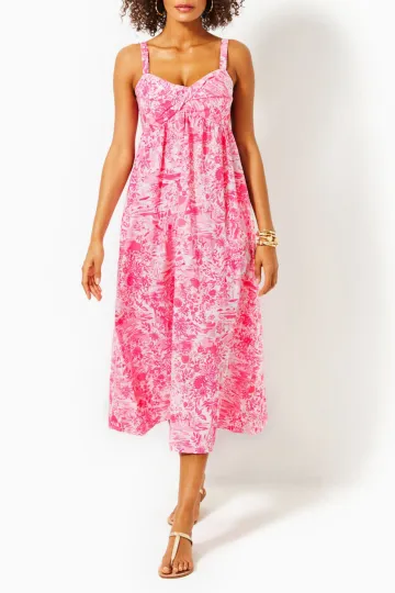 Wholesale Torsion Design Floral Print Sundress Midi Dress