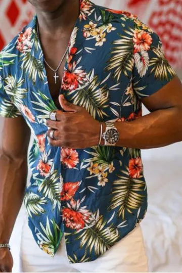 Wholesale Tropical Floral Print Men's Casual Shirt