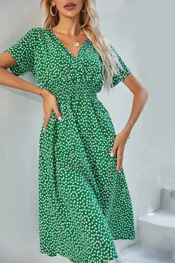Wholesale Women's Floral V-Neck Casual Midi Dress