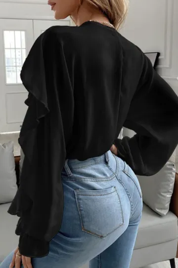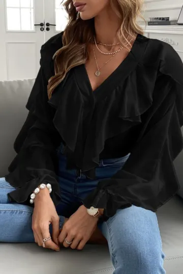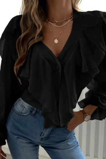 Wholesale V Neck Ruffle Top Shirt Long Sleeves