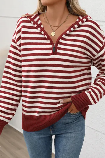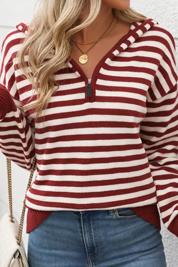 Wholesale V-neck striped pullover sweater new half-open hooded sweater