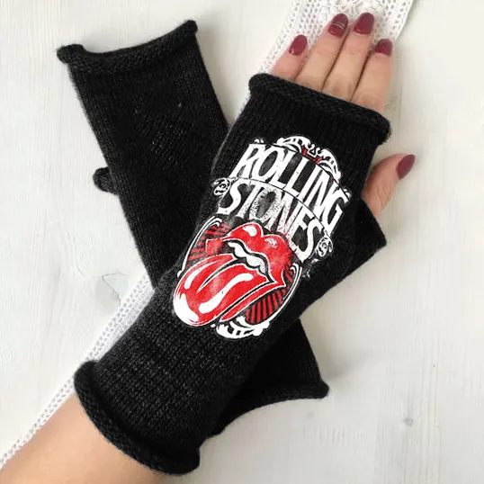 Wholesale Vintage Band Logo Fingerless Knit Gloves