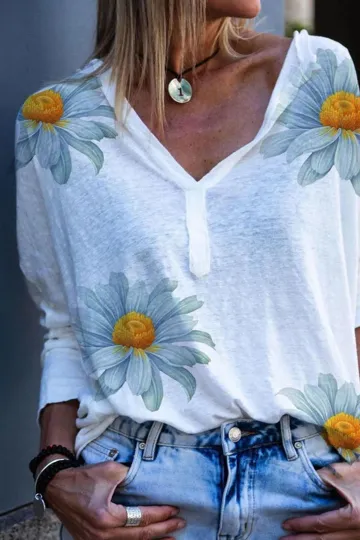 Vintage Floral Print V-Neck Long Sleeve Blouse
