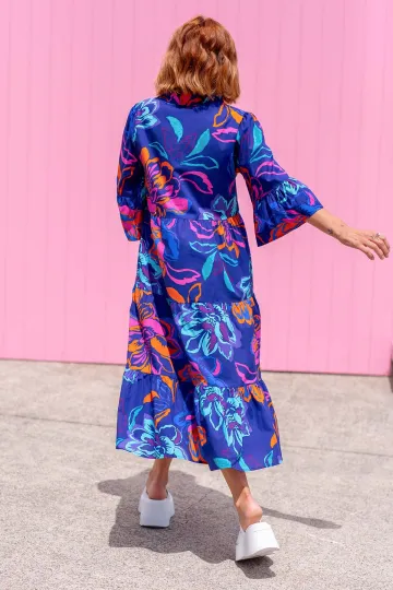 Vintage Floral Three-Quarter Sleeve Maxi Dress