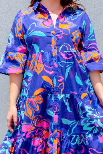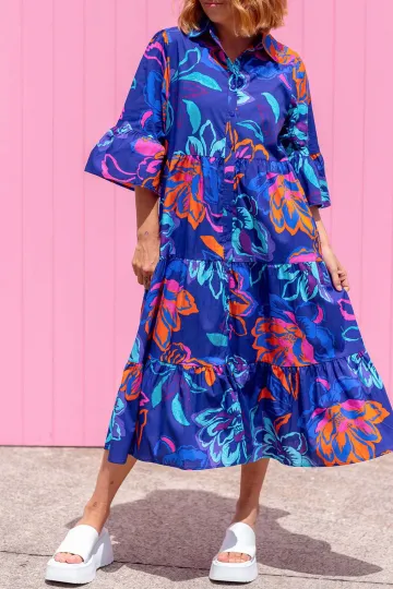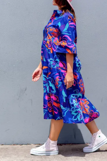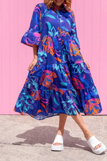 Wholesale Vintage Floral Three-Quarter Sleeve Maxi Dress