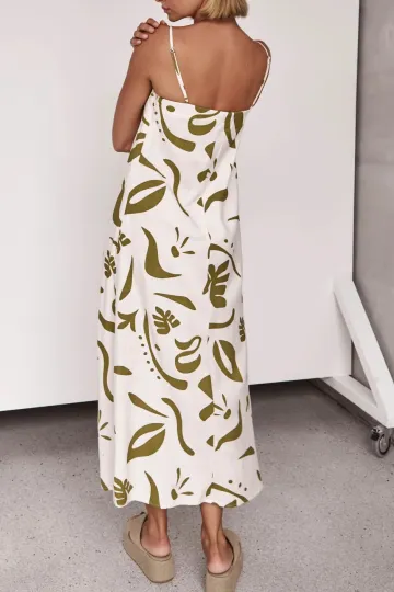 Vintage print strappy maxi dress