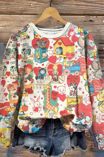 Wholesale Vintage Print Valentine Long Sleeve Blouse