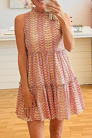 Wholesale Vintage striped tiered mini dress