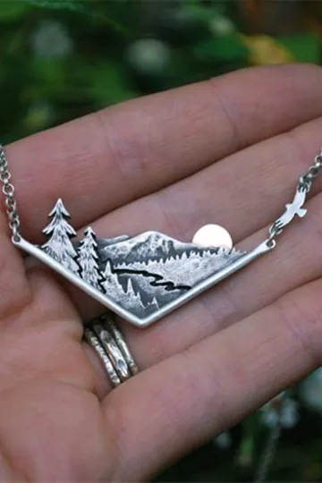 Wholesale Wandering River Valley Sunset Nature Necklace Pendant Necklace