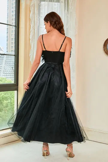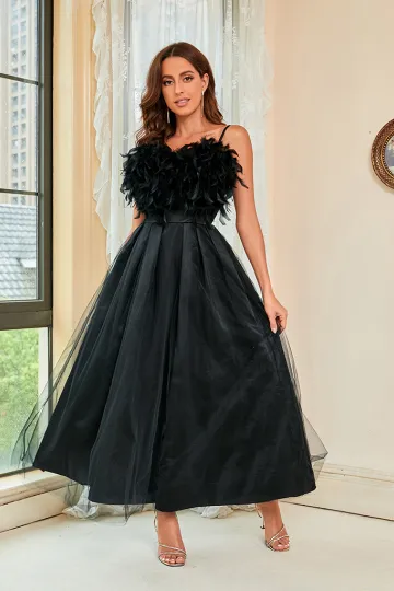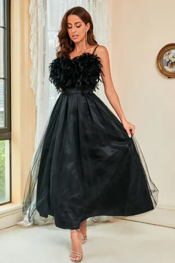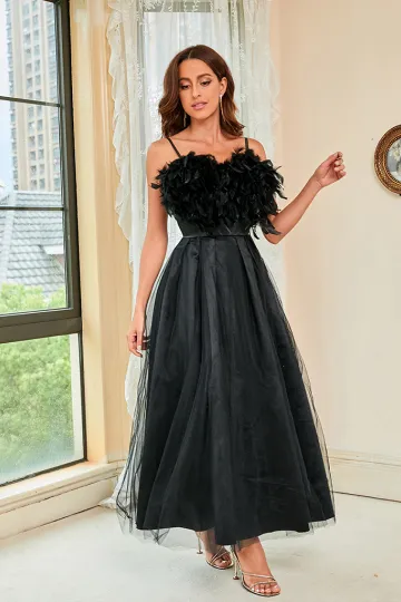 Woman'S Spring Summer New Feather Sling Mesh Dress