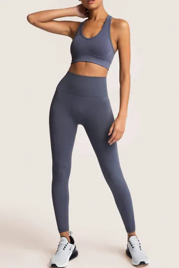 Wholesale Women's Beautiful Back High Waist Peach Hip Seamless Knitted Vest Trousers Two-piece Set