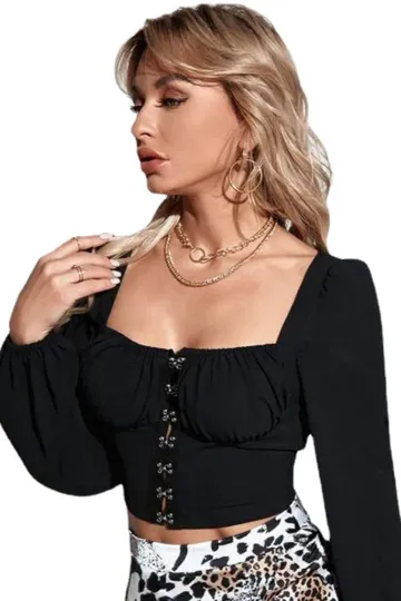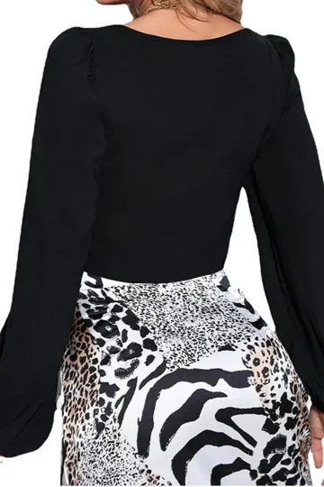 Women's bubble sleeve collar buckle long sleeve top