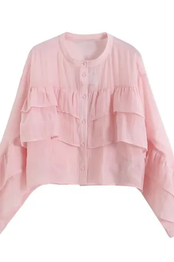 Wholesale Women's Button Stand Collar Ruffle Shirt blouse