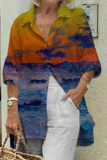 Wholesale Women's Casual Asymmetric Cotton Linen Shirt