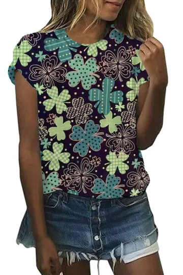 Wholesale Women's Casual Clover Print Streetwear Top