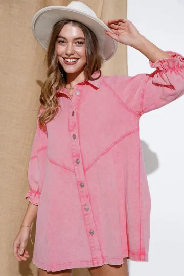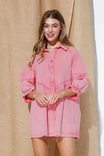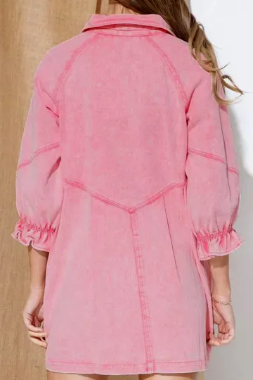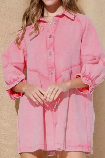 Women's Casual Loose Denim Balloon Sleeve Long Sleeve Dress