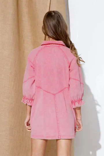 Wholesale Women's Casual Loose Denim Balloon Sleeve Long Sleeve Dress