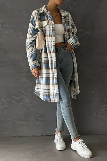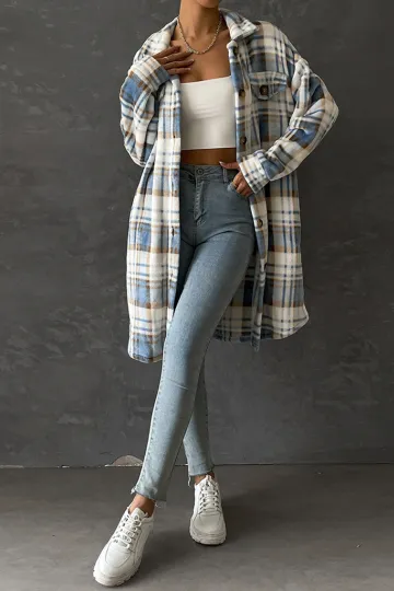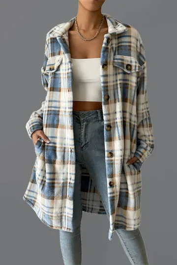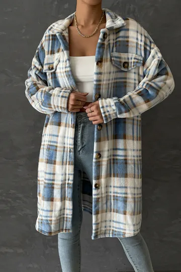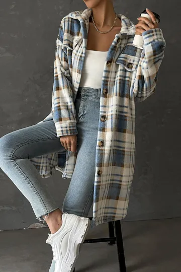 Women's casual plaid mid-length lapel coat