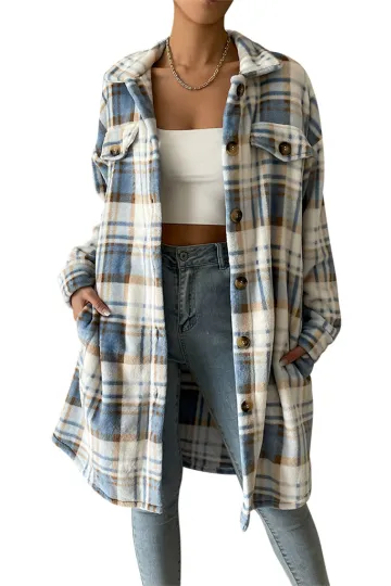 Wholesale Women's casual plaid mid-length lapel coat